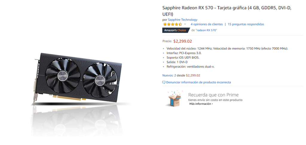 Haciendo una búsqueda rápida en Amazon encontramos que la tienda onliene más grande del mundo puso a la venta una tarjeta de video Sapphire Radeon RX 570 bastante curiosa.