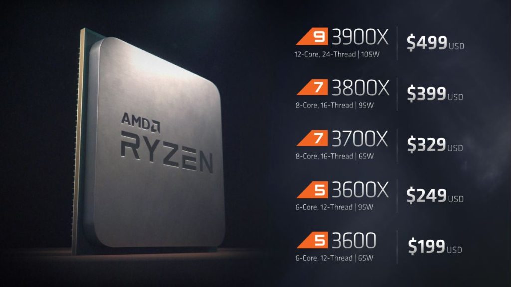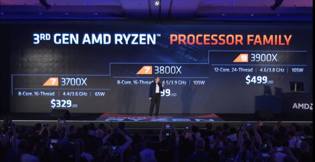 Además de los primeros detalles sobre la arquitectura Zen 2, AMD reveló los modelos que conformarán la familia de procesadores RyZEN 3. En este caso una de las grandes sorpresas fue que nace una nueva categoría de modelos RyZEN 9 que se caracterizan por ser los primeros de 12 núcleos para Gaming a un precio de tan sólo $499 dólares. En contraste el Core i9-9900K de 8 núcleos se lanzó a un precio de $530 dólares.