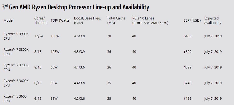 En cuestión de precios, el AMD RyZEN 9 3900X de 12 núcleos y 24 hilos con TDP de 105W tendrá un precio de $499 dólares, con lo cual competirá directamente contra el Intel Core i9-9900K.