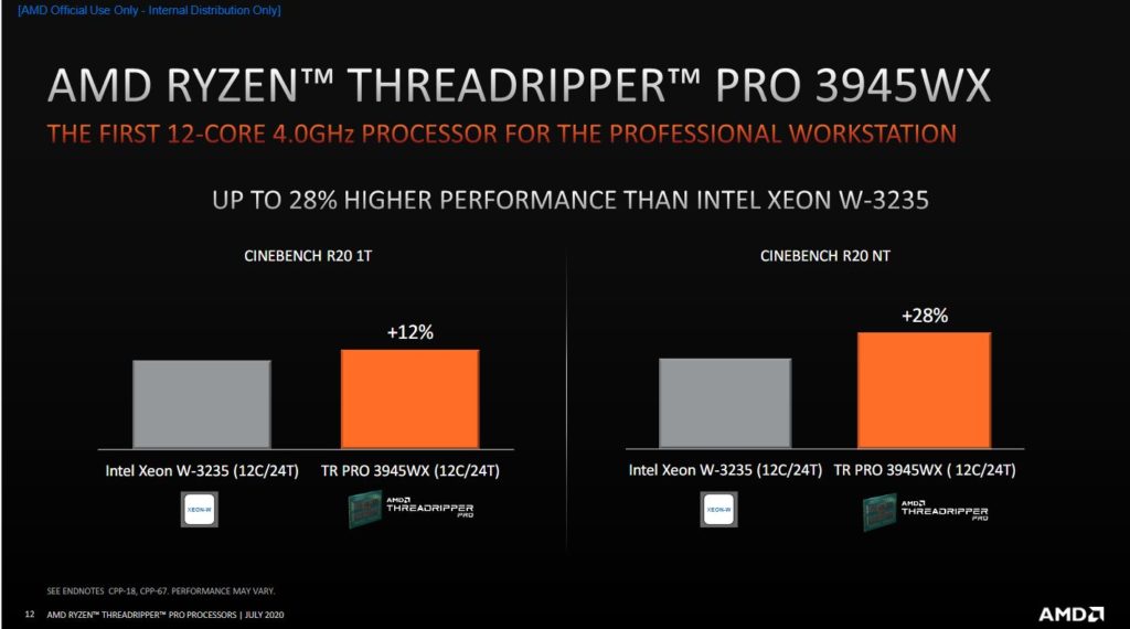 Para darnos una idea de su rendimiento, AMD señala que las versiones PRO de procesadores Threadripper son hasta 12% mas poderosos en tareas de un solo núcleo y hasta 28% más poderosos en multi-núcleo comparado a un procesador Intel Xeon de 12 núcleos.