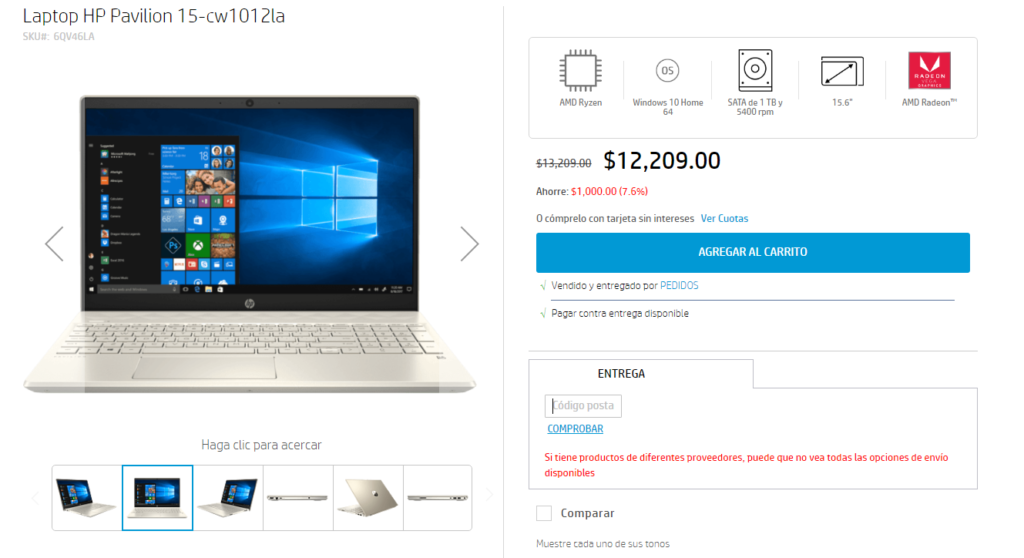 Diseño compacto y elegante, la HP Pavilion 15 (15-cw1012l) es una portátil para uso diario con gran autonomia de batería que está respaldada con un procesador AMD RyZEN 3 de 4 núcleos para tareas demandantes y multimedia.
