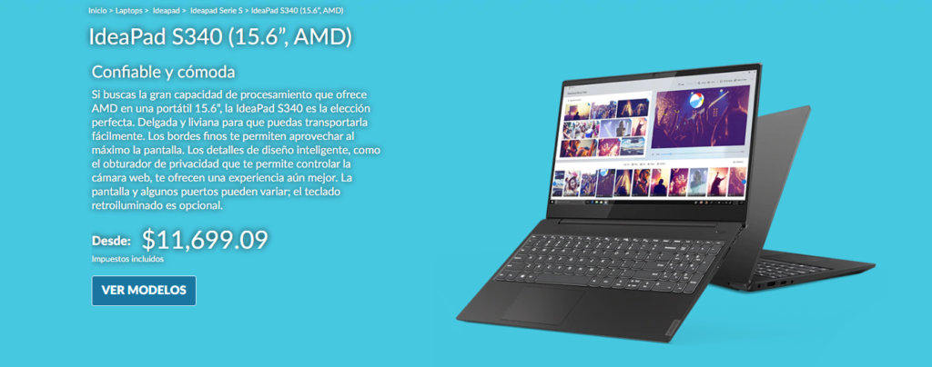 En términos de especificaciones, la Lenovo IdeaPad S340 tiene un diseño ultra-delgado con bisel finos que permiten aprovechar al máximo el área de la pantalla de 15.6″. También es súper delgada y liviana para transportarla a cualquier lugar.
