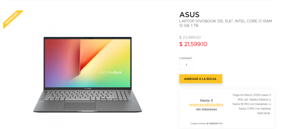 El ASUS VivoBook S15 ya está a la venta en El Palacio De Hierro a un precio de $21,599 MXN pesos mexicanos por el Buen Fin 2019.