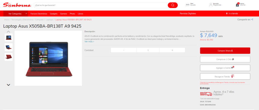 La portátil ASUS VivoBook X505BA está a la venta en Saborns a un precio de $7649 MXN pesos mexicanos por El Buen Fin 2019.