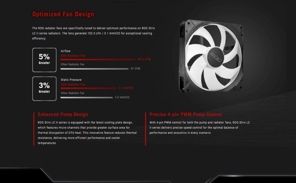 Los sistemas de enfriamiento líquido ASUS ROG Strix LC II AIO son actualizados con una bomba de agua más poderosa y nuevos ventiladores ROG Strix