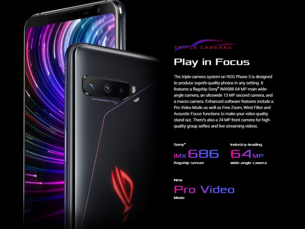 Aunque los smartphone gamer no se han caracterizado por tenerla mejor cámara del mercado, el ASUS ROG Phone 3 también es capaz de fotos con gran nivel de detalle. Esto se logra con un arreglo de triple-cámara de las cuales el lente principal usa un sensor Sony IMX686 de 64MP para la cámara principal, la segunda cámara tiene un sensor ultra-panorámico de 13MP, y la tercera es un lente macro.