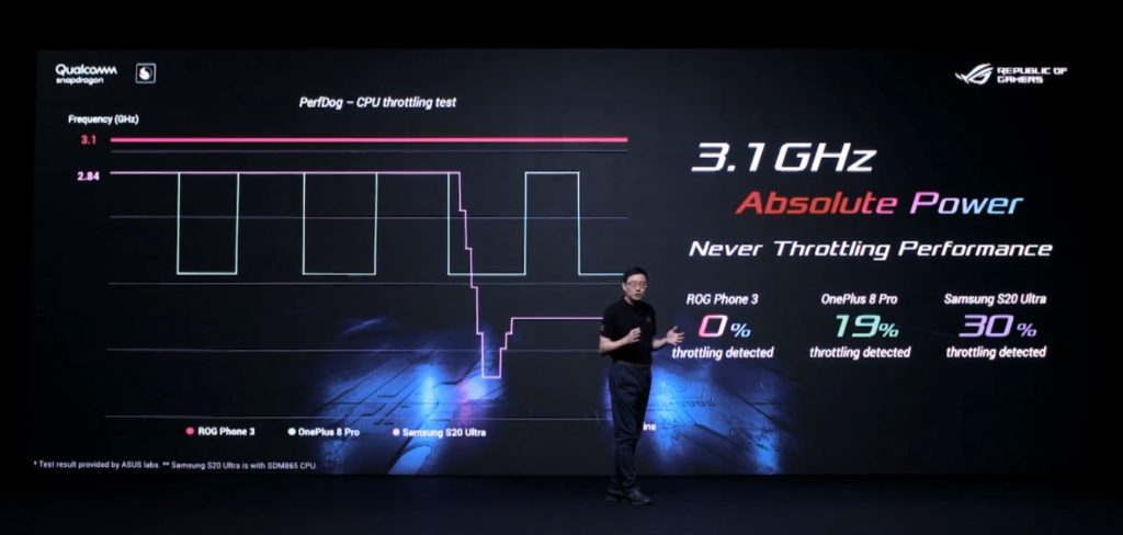 En términos de rendimiento, ASUS señaló que el ROG Phone 3 ofrece hasta 10% mayor rendimiento en CPU y GPU. Asímismo destacaron que el dispositivo entrega 1002 puntos en un núcleo y 3473 puntos en multi-núcleo en el benchmark Geekbench.
