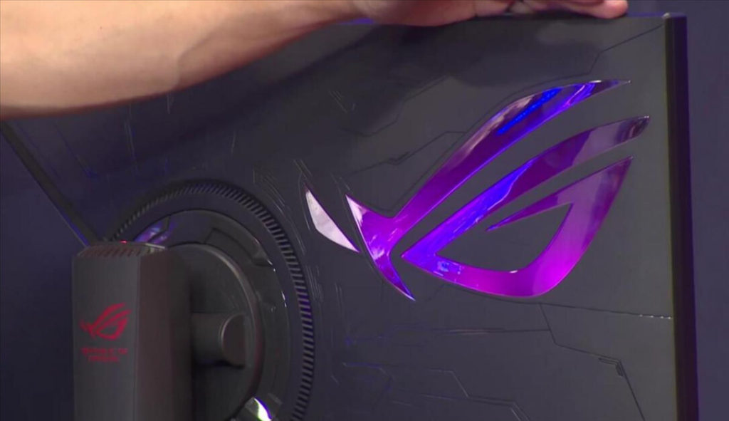 Como es de esperarse de un monitor de clase premium, el ROG Swift PG32Q tiene un diseño espectacular en la parte trasera donde luce un logo ROG con iluminación RGB que a su vez se puede controlar con el software Aura Sync.