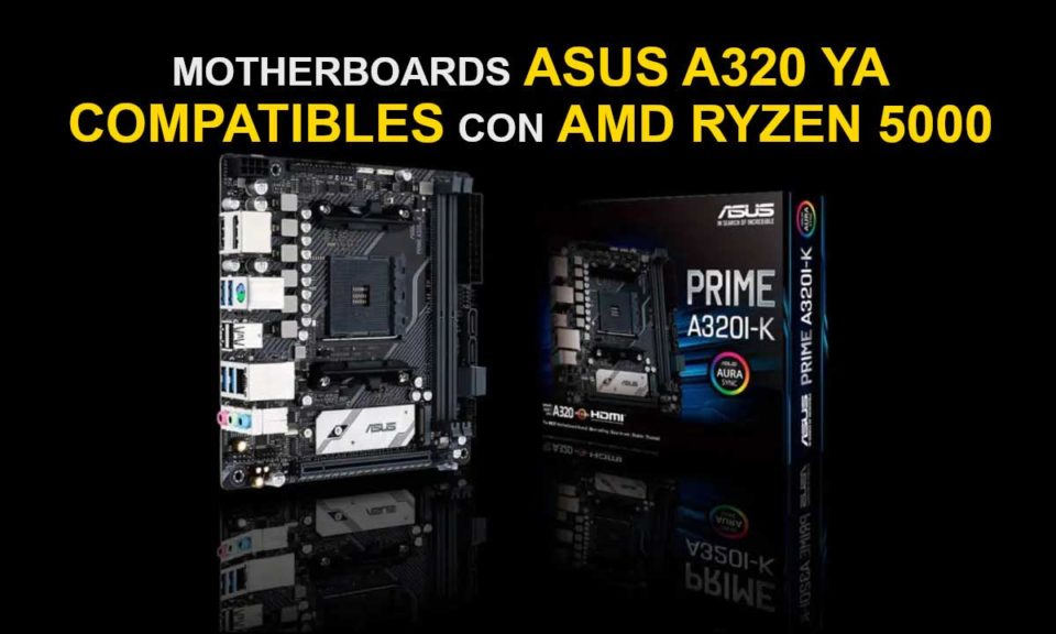 En este momento no hay un anuncio oficial de parte ASUS o GIGABYTE que confirme compatibilidad de motherboards A320 con procesadores AMD RYZEN 5000, pero si consultamos la lista de procesadores soportados con la ASUS PRIME A320M-K podemos ver que ya aparece el AMD RYZEN 5 5600X, RYZEN 7 5800X y los RYZEN 9 5900X y RYZEN 9 5950X.