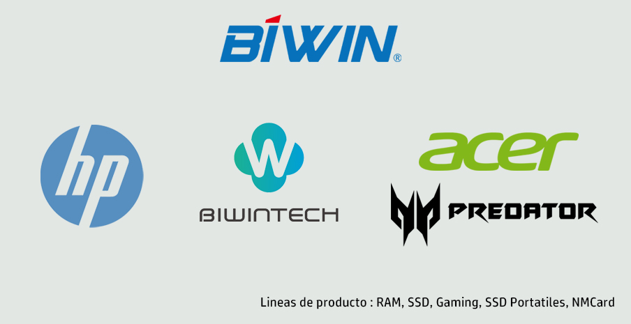 BIWIN introdujo a lo largo del 2020 una extensa variedad de productos bajo la marca HP (Business Partner) que incluye Unidades de estado sólido (SSD) tipo SATA y M.2 de Alto Rendimiento, memoria RAM y tarjetas de memoria para dispositivos móviles.