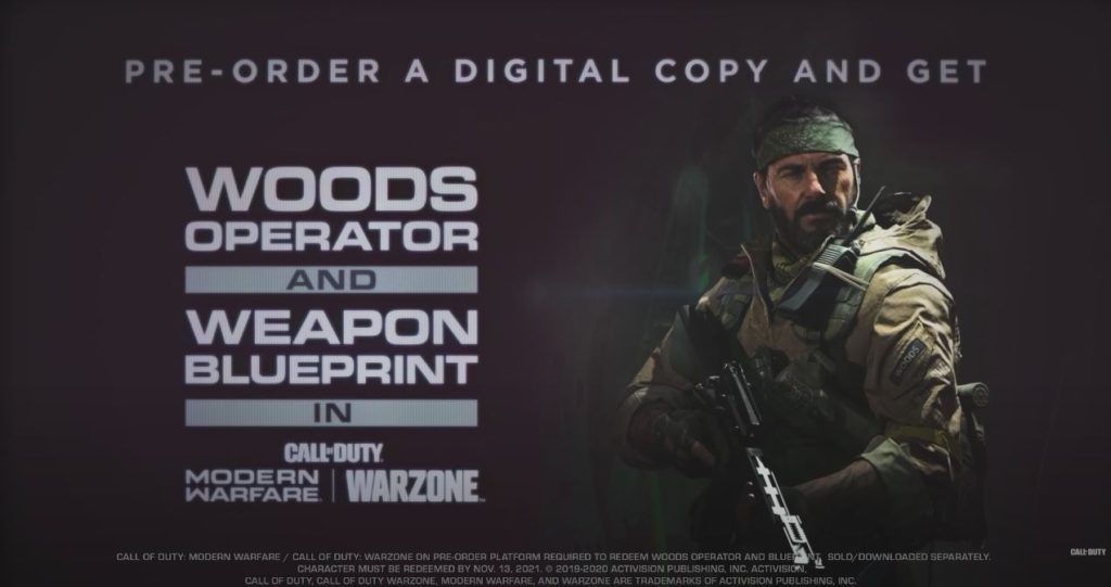Activision ha confirmado que los usuarios que reserven o pre-ordenen las versiones digitales seleccionadas de Call of Duty: Black Ops Cold War recibirán recompensas digitales, incluyendo el operador Frank Woods de Black Ops para Call of Duty: Warzone y Call of Duty: Modern Warfare.
