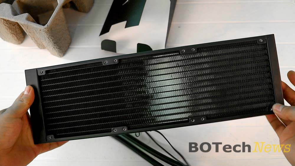Por otra parte, el radiador de 360mm está hecho de aluminio y tiene un grosor de 29mm que ayuda bastante a su instalación en el gabinete. Aunque para evitar problemas de compatibilidad con los ventiladores instalados es necesario tener al menos 55mm de espacio.
