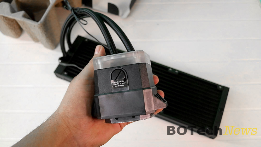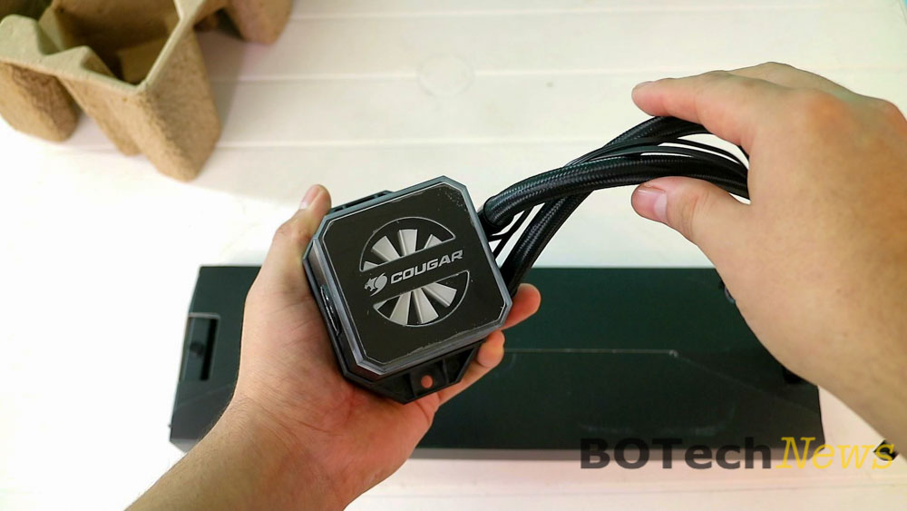 Al igual que en otros sistemas de enfriamiento líquido AIO, el COUGAR HELOR 360 tiene una bomba / bloque de agua integrada que está conectada mediante dos tuberías al radiador de 360.