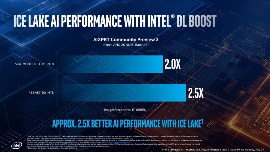 Para lograr esto, un componente esencial de los nuevos procesadores Intel Core de 10ª Generación es la llamada función DLBoost. Se refiere a un juego de tecnologías x86 que están diseñadas para acelerar el rendimiento INT8 mediante Inteligencia Artificial usando . Esto va a ser muy importante para ejecutar aplicaciones de creatividad, productividad y entretenimiento en portátiles con diseño ultra delgadas y ligeras.