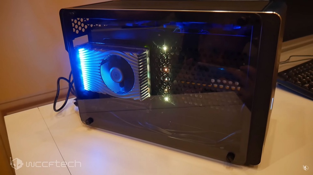 Como se puede apreciar en la imagen de arriba, el prototipo que se mostró en sesiones exclusivas con prensa en CES 2020 corresponde a una tarjeta de video dedicada (dGPU) con interfaz PCIe y factor de forma Mini-ITX con 15.2cm de largo.