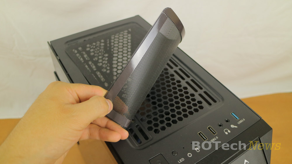 En la parte superior encontraremos un filtro magnético que nos ayudará a mantener el polvo fuera de nuestro gabinete. Este filtro es lavable por lo que no tendremos problemas para limpiarla cuando se necesario.