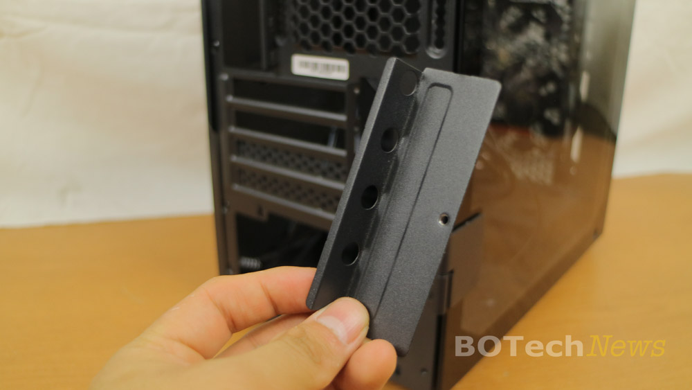 En la parte trasera notaremos que hay espacio para un ventilador de 120mm y que su posición vertical se puede ajustar para evitar problemas de compatibilidad con motherboards que tienen un circuito de fases muy robusto. Aquí nos hubiera gustado que se hubiera dejado un venetilador pre-instalado para mejora el flujo de aire.