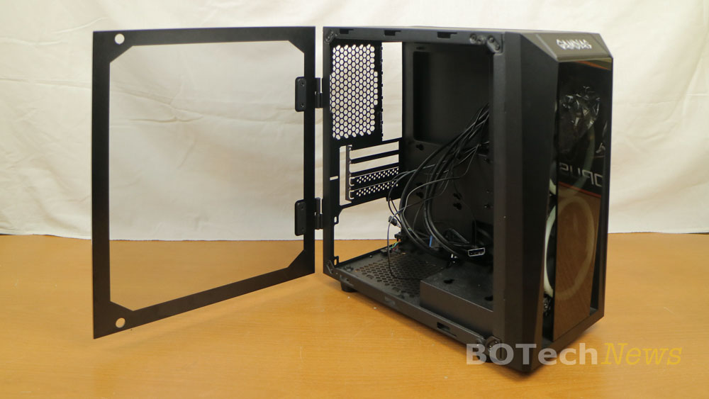 El cristal templado del planel frontal está sujeto con tornilos y un par de visagras lo que facilita acceder al interior del gabinete y hasta incluso se puede remover completamente para evitar daños durante el proce de instalación.