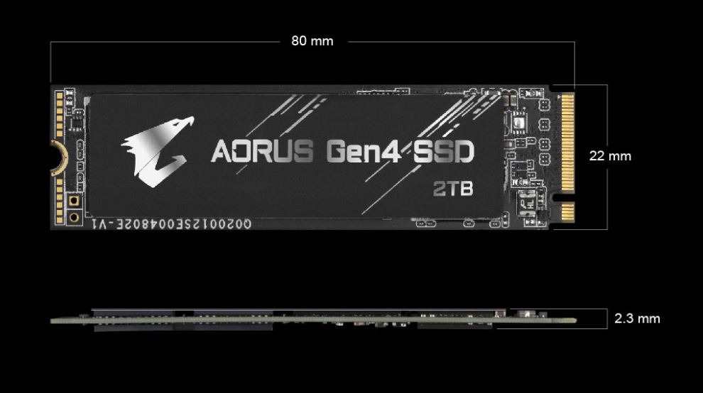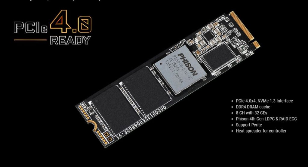 De vuelta al SSD AORUS NVMe Gen4, la unidad está disponible en capacidades de 500GB, 1TB y hasta 2TB. Está fabricado con memoria 3D NAND TLC (Triple-level cell) de 96 capas, usa un controlador Phison PS5016-E16 con 8 canales y hasta 1TB de memoria DDDR4 como caché.