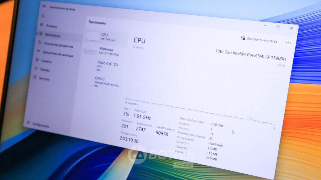 HUAWEI promete que la HUAWEI MateBook D 16 es la más poderosa a la fecha ya que ofrece hasta 23.6% mayor rendimiento en un solo núcleo y hasta 142.3% de rendimiento multi-núcleo. Esto es posible debido a que contará con opciones de procesadores Intel Core de 13a Generación y de 12a Generación.