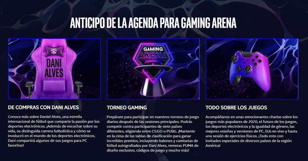 En el comunicado oficial, a lo largo del Intel Gaming Arenaa los usuarios de todo el continente americano podrán acceder a charlas sobre los juegos más populares de 2020, nuevos lanzamientos para el 2021 y conocer sobre el presente y futuro de la industria del Gaming.