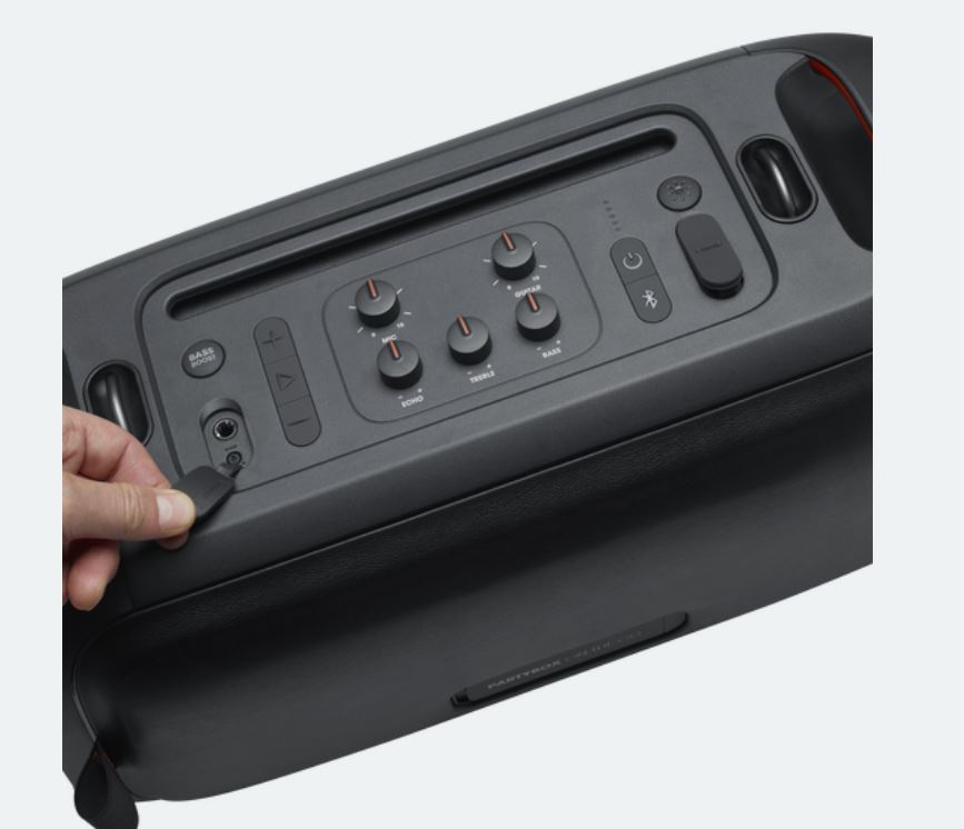 Otra ventaja de la bocina JBL PartyBox On-The-Go es que podemos transmitir nuestras canciones favoritas desde nuestro smartphone a través de bluetooth o bien por USB. Además ofrece una excelente autonomía de hasta 6 horas de reproducción continua.