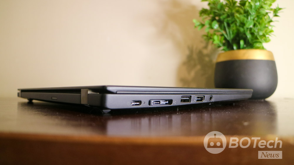 En uno de sus costados, la Lenovo ThinkPad X13 Gen 1 (2020) tiene a un costado dos puertos USB 3.1 Gen 2 Type-C de los cuales uno cuenta con soporte para recarga, un USB 3.2 Type-A, una salida de video HDMI 2.0, un lector Smart Card, y un conector jack de 3.5mm para micrófono y audífonos.