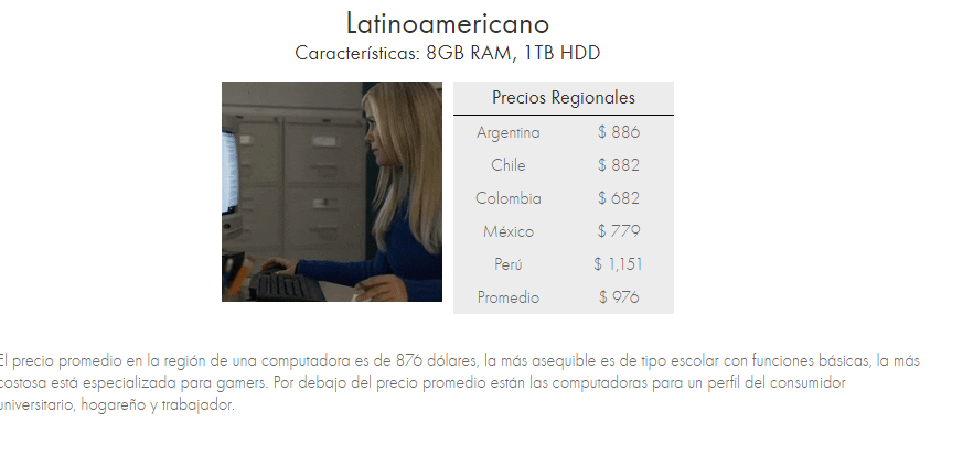 Haciendo una comparación por región de Latino América se detectó que Colombia es el país donde es más económico comprar una computadora, mientras que Perú se coloca como el lugar más caro para adquirir una PC o portátil. En el caso de países como Argentina, Chile y México la historia fue diferente ya que estan cerca del precio promedio oscilando los $876 dólares (17, 195 MXN).