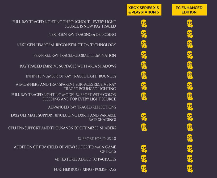 En el caso de Metro Exodus Enhanced Edition la historia es un poco diferente ya que, según 4A Games, los cambios del motor han sido tan importantes que el juego tuvo que recompilarse por completo para agregar las nuevas características y garantizar el mejor rendimiento en cualquier plataforma.