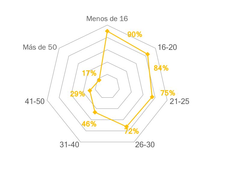 En segundo lugar tenemos a los millenials (21-35 años) que empiezan a ser económicamente activos con el 73% de la población. Le sigue la Generación X (36-40 años) con el 40% de la población que básicamente es la que mantiene viva a la industria de los videojuegos.