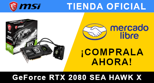 La MSI GeForce RTX 2080 SEA HAWK X ya está disponible en distribuidores especializados de equipo de cómputo y en la tienda oficial de MSI en Mercado Libre. Su precio sugerido es de $26,999 MXN