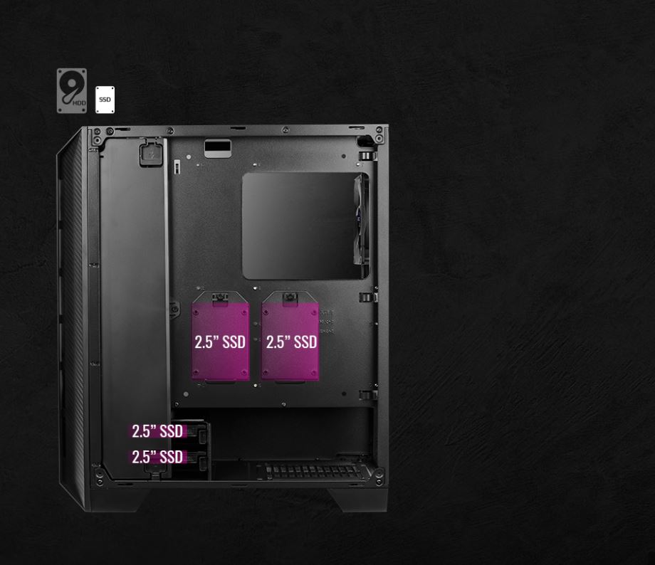 Como opciones de expansión se localizan seis bahías para discos duros (HDDs) de 3.5″ que también pueden usarse para instalar cuatro unidades de estado sólido (SSDs) de 2.5″. También se tiene espacio para instalar disipadores de CPU con altura de hasta 167mm y tarjetas de video con longitud de hasta 359mm.