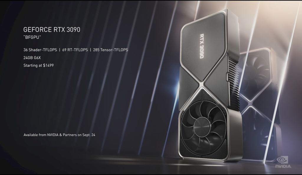 La tarjeta de video GeForce RTX 3090 será el segundo lanzamiento de la familia “Ampere” para el próximo 24 del mismo mes por un precio de $1,499 dólares.