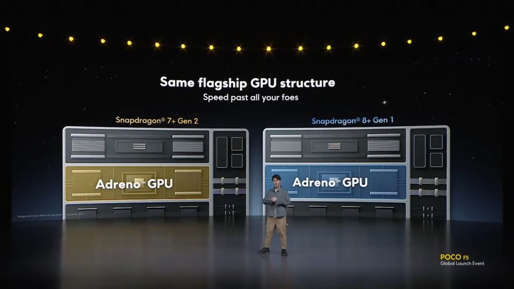POCO F5 también brilla por ser uno de los primeros smartphones que usa el procesador Qualcomm Snapdragon 7+ Gen 2. Este chip utiliza el mismo proceso de manufactura de 4nm de TSMC y es el sucesor del Snapdragon 7 Gen 1 lanzado hace justamente un año en 2022.
