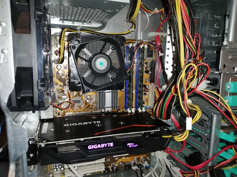Para darles un ejemplo. Hace unos días, los amigos de UniversalNet recibieron un vieja PC con un Intel Core i7-Q9550 y 4GB de RAM DDR2 que, si bien, estamos hablando de una configuración de hace 10 años tenía la ventaja que contaba con una fuente de poder de 450W sin certificación 80 Plus y una motherboard con slot PCIe x16 2.0.