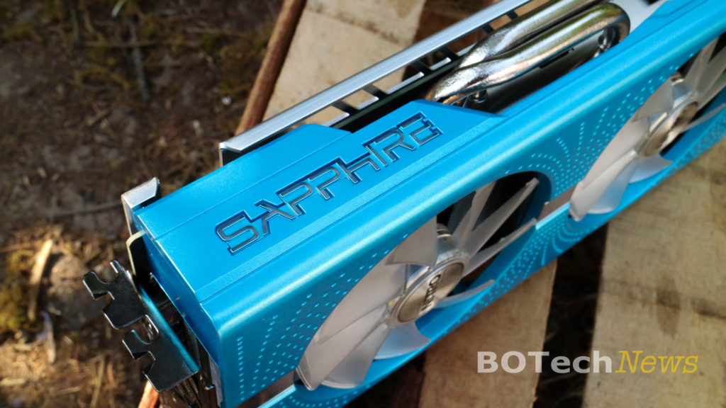En esta toma apreciamos el logo “Sapphire” grabado en la carcasa el cual sirve tanto como un elemento estético que se ilumina en color azul sino que además puede servirnos para monitorear la temperatura.