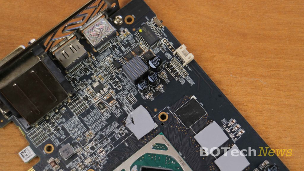 Continuando con el recorrido por el PCB. La Sapphire Radeon RX 590 Nitro Plus Special Edition también cuenta componentes de grado premium, incluyendo un circuito de alimentación de 6-fases diseñadas para soportar hasta 300W, bobinas con núcleo de diamante y capacitores de polímero de 200,000 horas. Y como medida de seguridad se tiene un fusible PCIe como método de seguridad.