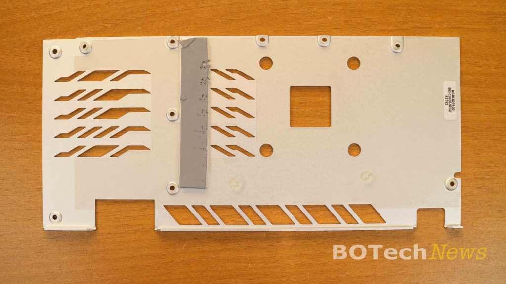 Teniendo el backplate desmontado nos damos cuenta que está hecho de aluminio sólido y que su función no es meramente estética, sino que también sirve de apoya para disipador el calor de las fases de alimentación de la parte trasera del PCB. Para este se incluye una tira de almohadillas térmicas (Thermal Pads).