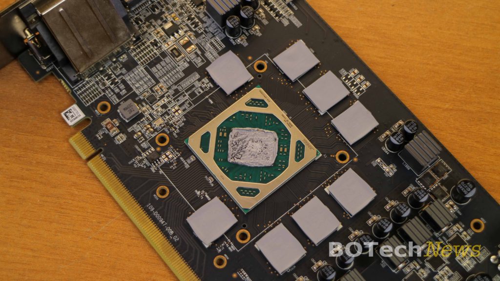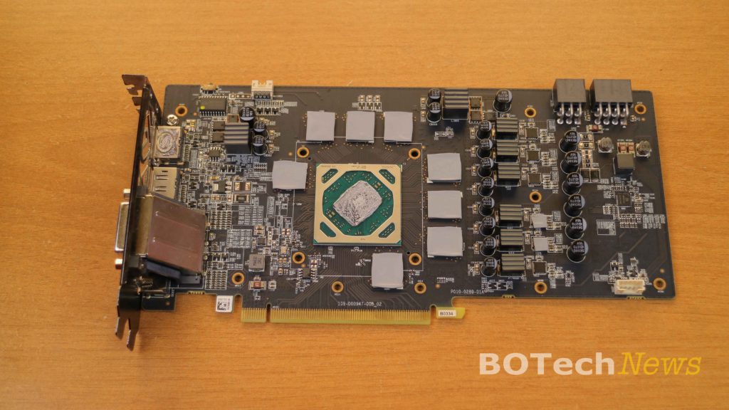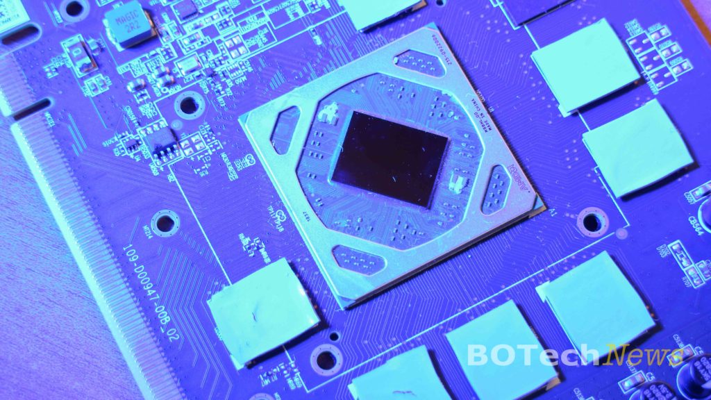 Al centro se localiza el GPU AMD “Ellesmere” (aka Polaris 30) basado en la arquitectura GCN 4.0 que reúne la masiva cantidad de 5.7 mil millones de transistores. Éste a su vez está configurado con 2304 Stream Processors, 144 TMUs (Texture Units) y 32 ROPS