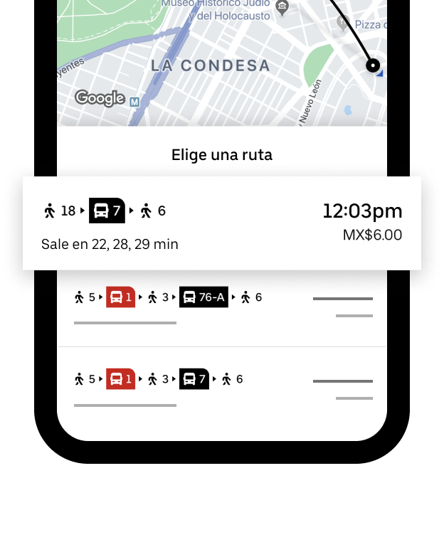 En lo que respecta a transporte público, la compañía anunció que la nueva actualización de la aplicación mostrará una opción de Transporte Público en la sección de productos. Cabe mencionar que ésta funcionalidad de Transporte Público es gestionada por un tercero que se especializa en integraciones con transporte público.
