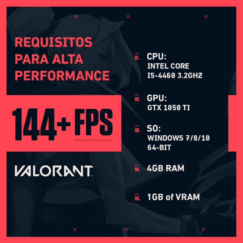 Una de las grandes bondades de VALORANT es que tiene requisitos de sistema muy amigables para que pueda correr en cualquier PC sin importar sus especificaciones. Básicamente puedes tener una experiencia de juego aceptable desde con gráficos integrados Intel HD 300 mientras que con una GeForce GTX 1050 Ti sería más que suficiente para jugar a más de 144FPS.