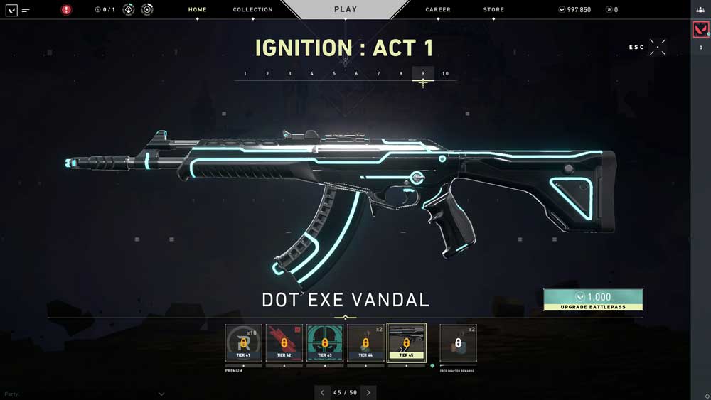 El Acto 1 del Pase de batalla de VALORANT tendrá 50 grados abiertos por tiempo limitado. Habrá una versión gratuita y uno premium. La versión gratuita estará disponibles para todo aquél que inicie sesión durante el periodo de vigencia y activo con el contrato de personaje a elegir y progresarán de manera simultánea según la XP que se gane.