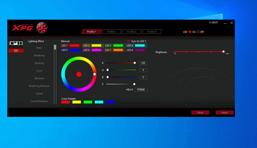 Vivimos en una época donde la personalización con RGB es mandatoria en cualquier producto Gamer. En el caso de la memoria XPG SPECTRIX D60G contamos con un software llamado XPG RGB Sync que nos permite elegir entre más de 10 efectos de iluminación o elegir los colores de nuestra preferencia.