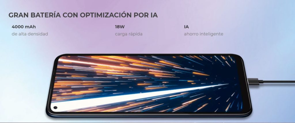 El dispositivo cuenta con una batería de 4000 mAh con 18W de carga rápida y soporte AI para ahorro inteligente de batería. Incluye también un conector USB Type-C y sonido envolvente DTS:X Ultra para disfrutar películoas y videojuegos de forma más inmersa.